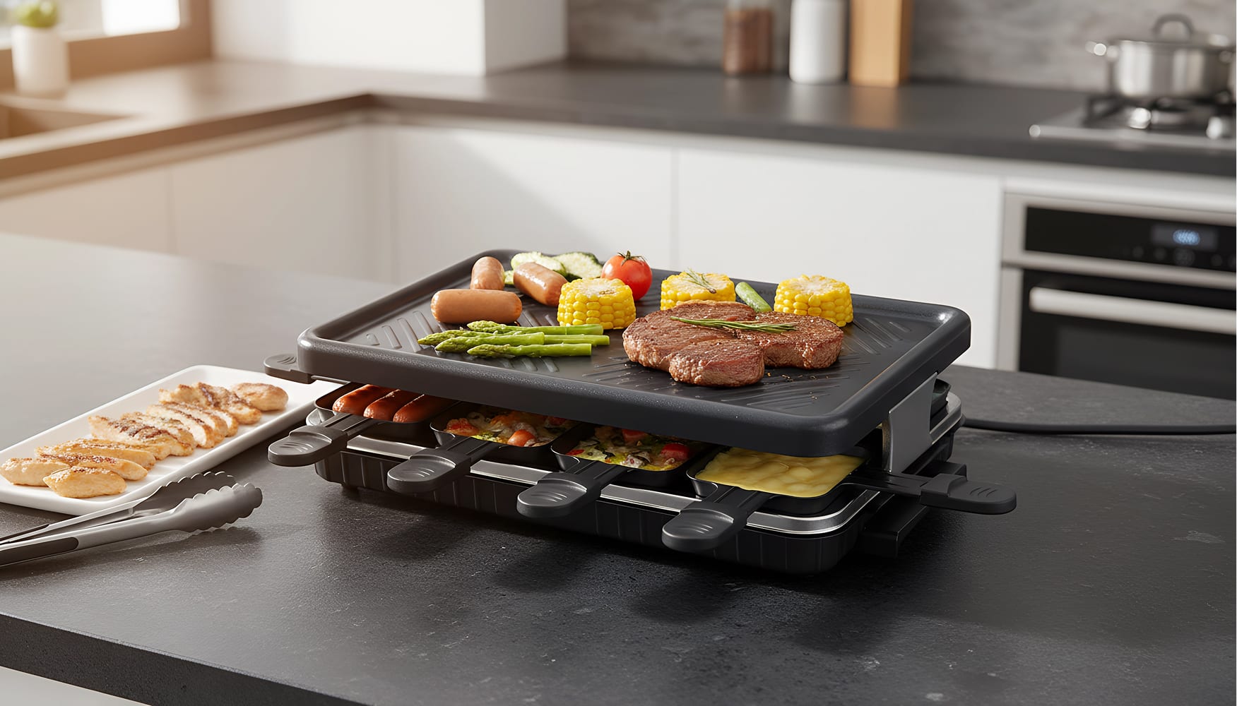 The multi-function electric grill oven capabilities extend far beyond basic grilling. Testers successfully prepared perfectly seared steaks, crispy-skinned salmon, caramelized vegetables, and even delicate items like shrimp and asparagus without any smoke triggering alarms. The included small individual pans add incredible versatility—simultaneously cook eggs, sausages, and corn while grilling your main protein, making this ideal for families with diverse breakfast or brunch preferences. The result? Food that's crispy on the outside, tender inside, with natural juices and flavors fully retained. 🔥